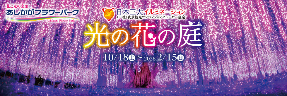 あしかがフラワーパークではテーマを3つに分け、ここでしか見ることのできないイルミネーションの演出をしています。